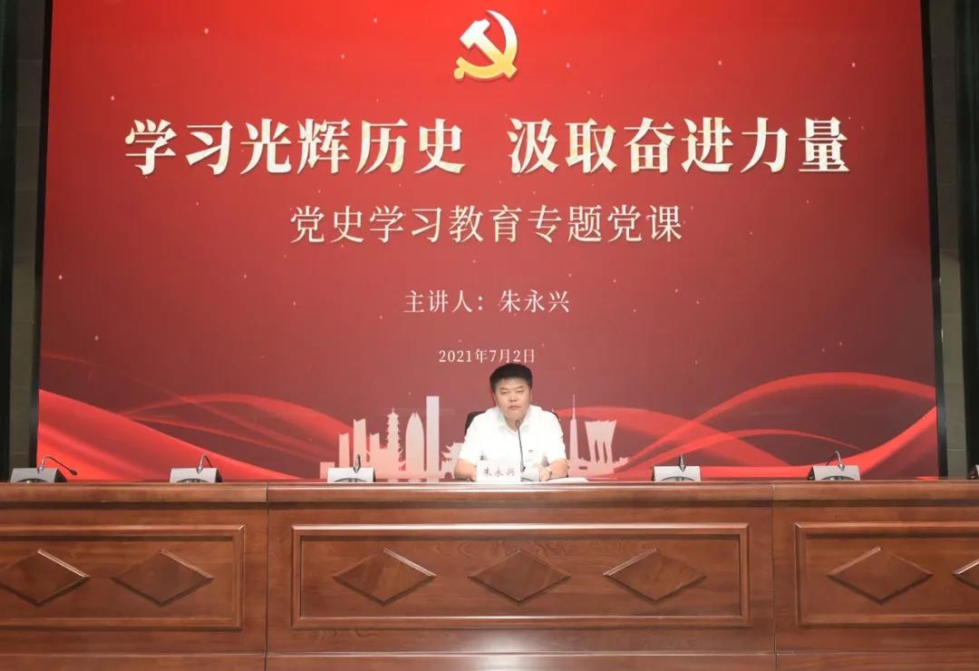 隨后,朱永興作題為《學習光輝歷史  汲取奮進力量》的黨史學習教育專題黨課。他從黨的四個歷史時期、推進的四件大事講述了黨的百年輝煌歷史,總結(jié)概括了中國共產(chǎn)黨百年歷史積累的八個方面寶貴經(jīng)驗。他表示這些經(jīng)驗彌足珍貴,文旅集團和白馬湖公司全體黨員要從中汲取思想的力量、信仰的力量、道德的力量、實踐的力量,要用黨的奮斗歷程和偉大成就鼓舞斗志,明確方向。