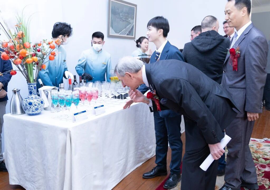 現(xiàn)場,淮揚(yáng)菜集團(tuán)廚師團(tuán)隊(duì)還以今世緣國緣酒為基酒,融合中歐酒文化,為嘉賓們特別調(diào)制了特色雞尾酒。
