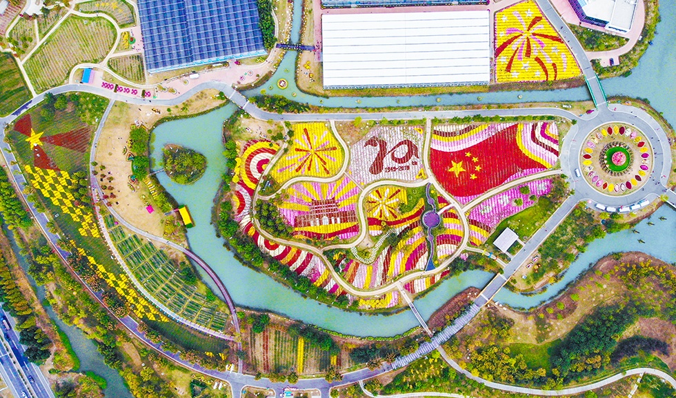 坐擁國家生態(tài)名湖之畔,吸納大湖風光,百畝菊海,香形具美。從高空俯瞰,萬千彩菊繪成各種紅色主題元素圖案,描繪出中華民族偉大復興的壯麗畫卷。